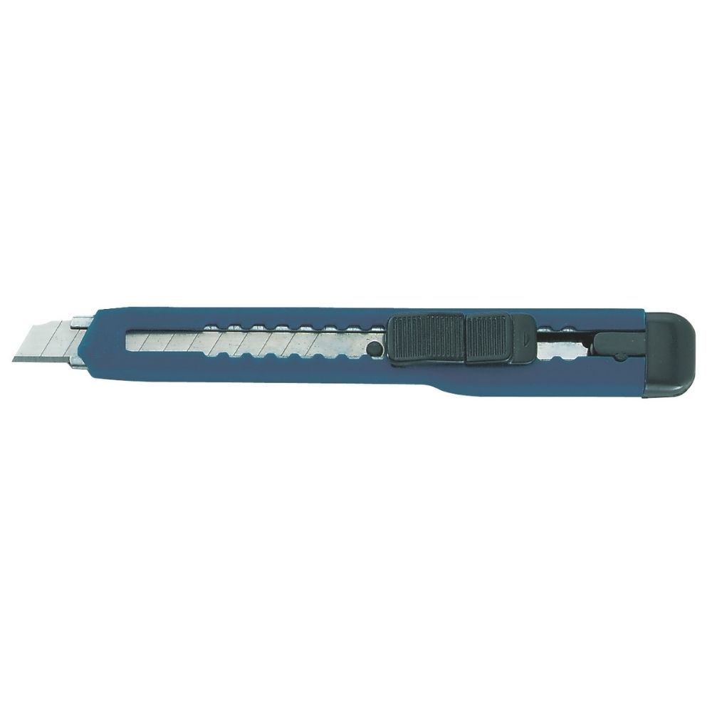 2 positions de curseur: 1 position auto-bloquant, 1 position avec retour automatique de lame. Contient 1 lame noire 9 mm x 0,4 mm anti-corrosion rétractable et sécable. Présentation libre service.