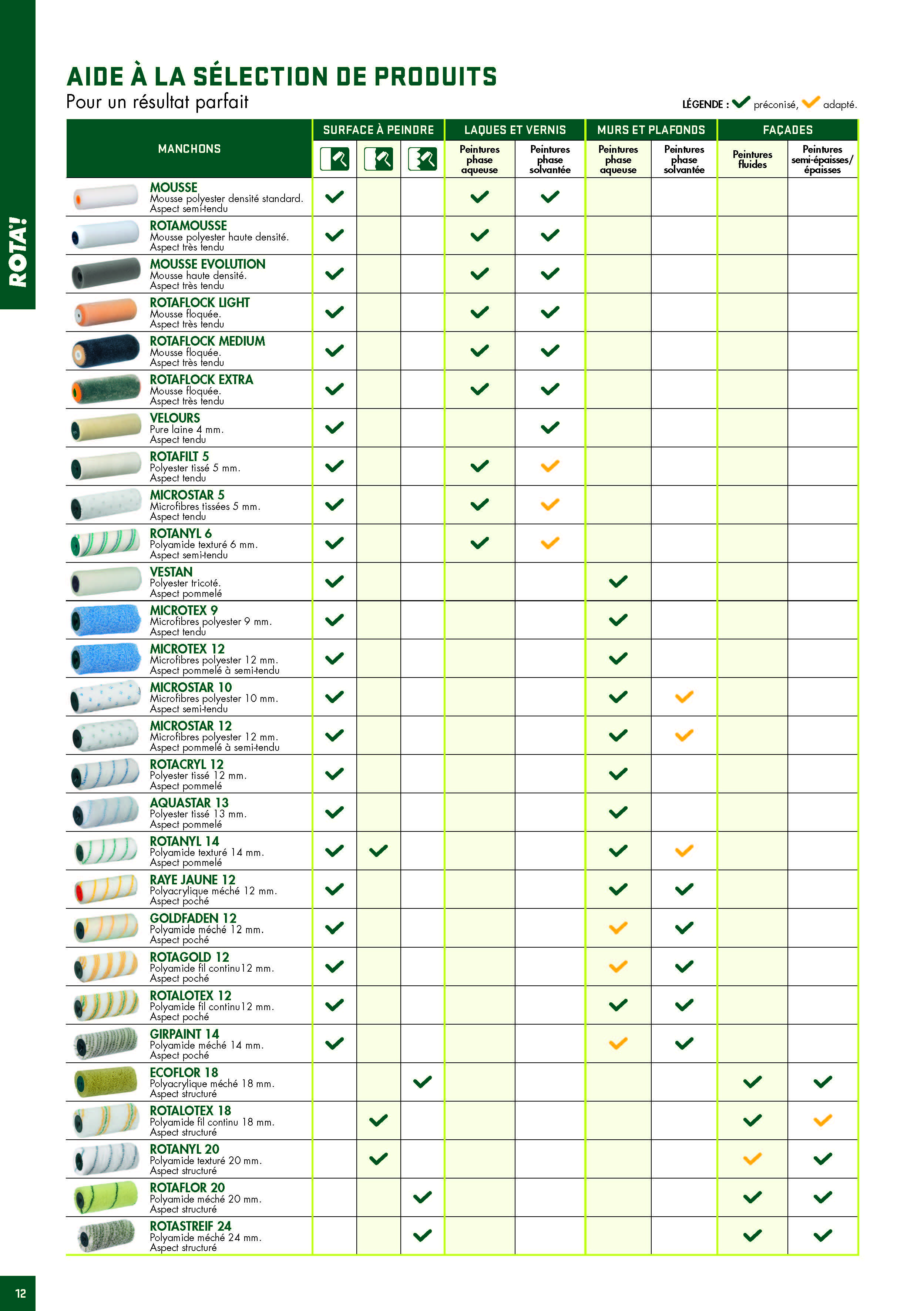 Consultez le tableau de préconisation pour trouver le bon rouleau